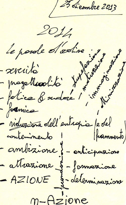 A un rapido esame viene fuori che, dopo un 2013 all’insegna delle rime in -MENTO (risenti-mento, esauri-mento, sgo-mento, tor-mento ecc.), nel 2014 si auspica un trionfo di vocaboli che finiscano in -AZIONE.